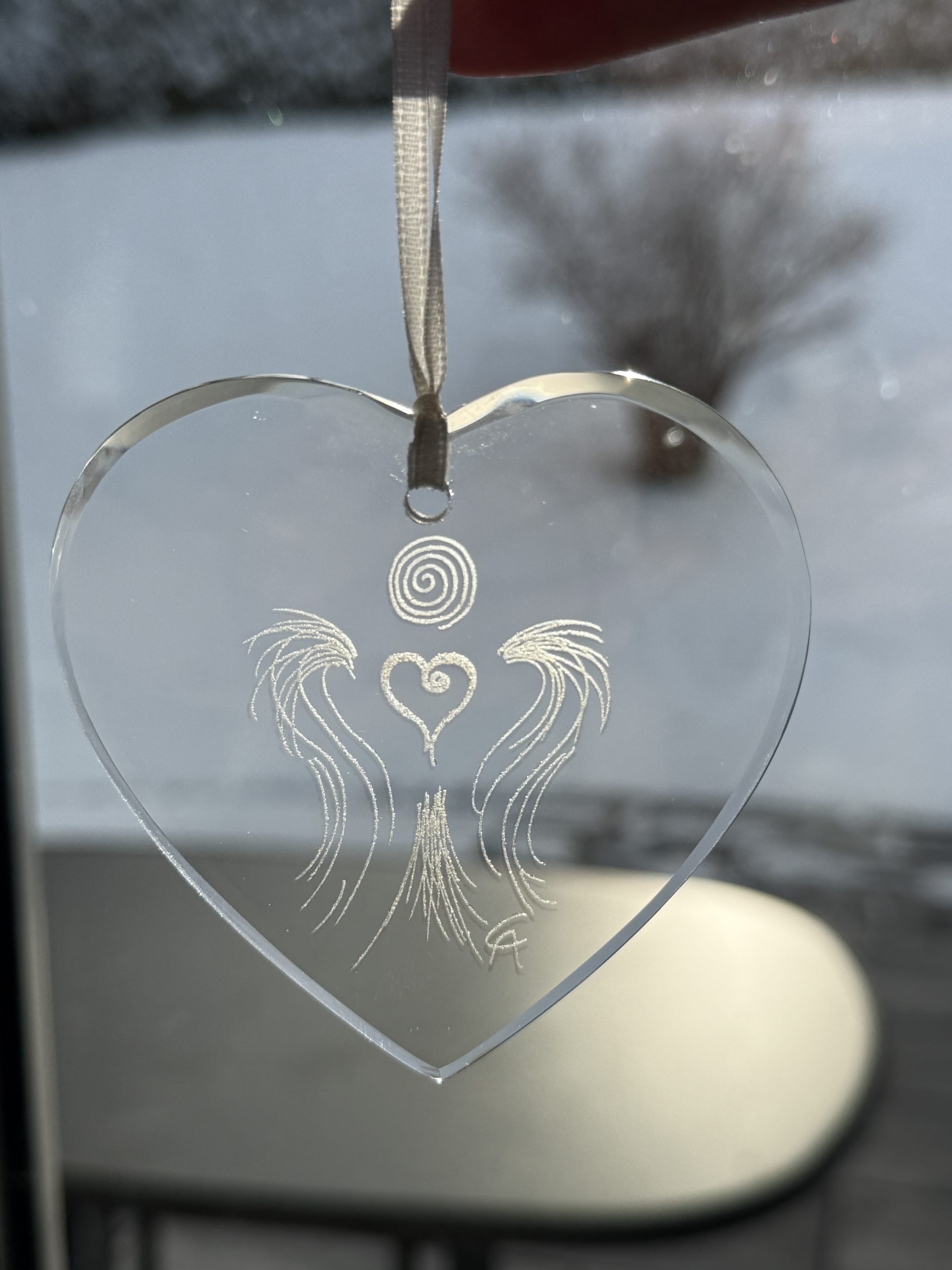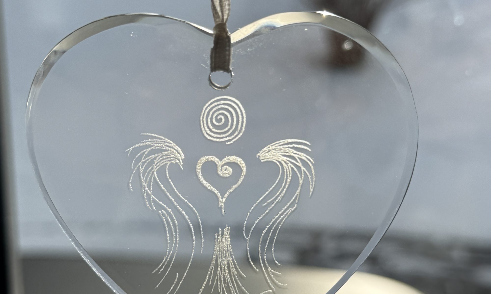Kunstglas graviert mit dem graphischen Herzengel