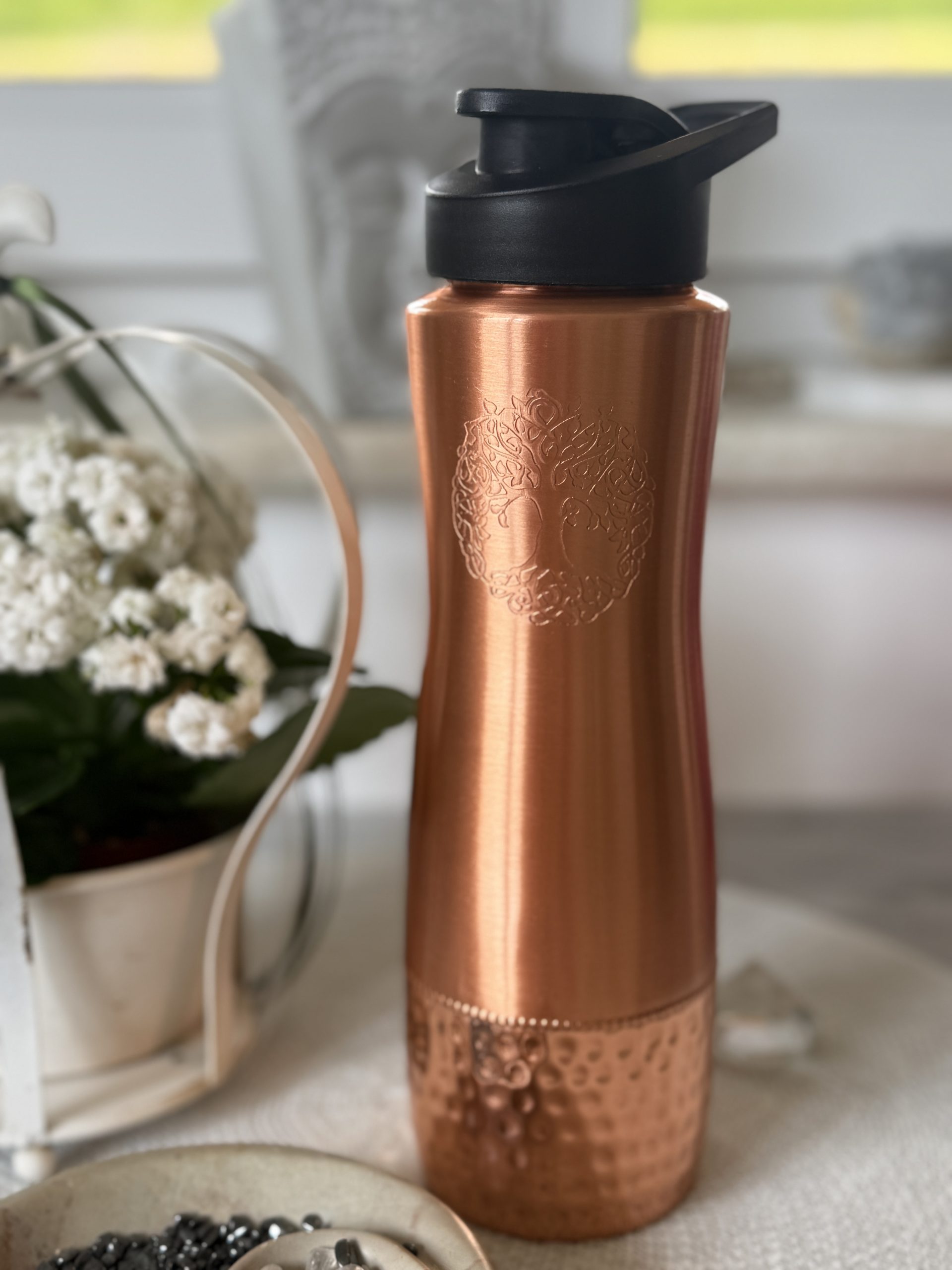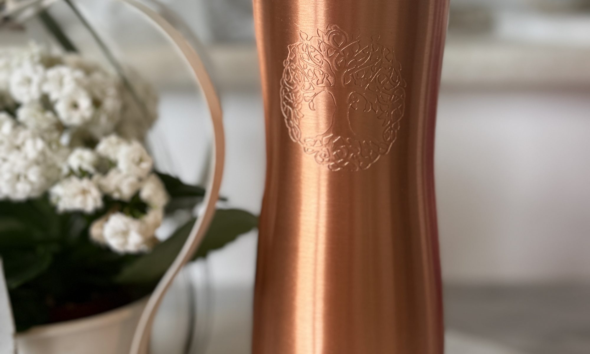 Das Symbol des Lebensbaumes intensiviert die Wirkung des Kupfers und erinnert uns an die Kraft unseres Mensch Seins. Standhaft zu sein zwischen Himmel und Erde.
